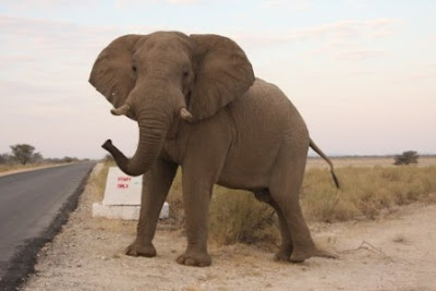 As we left our camp at Okaukuejo one morning we were greeted by this bull elephant. It seemed appropriate to stop and give way to the larger vehicle.